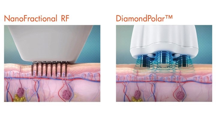 ترکیبی از NanoFractional Radio Frequency (RF) و SmartScan™ برای لایهبرداری رفع صدمات پوستی (ablation & resurfacing) و DiamondPolar™ با فناوری (MP)² که چندقطبی RF بهمراه میدان الکترومغناطیسی پالسی است (PEMF)